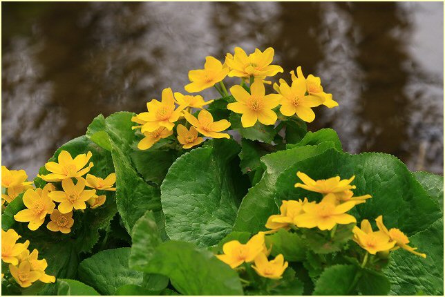 特にエゾノリュウキンカが多く、花々の背景の彩りを添えてくれています